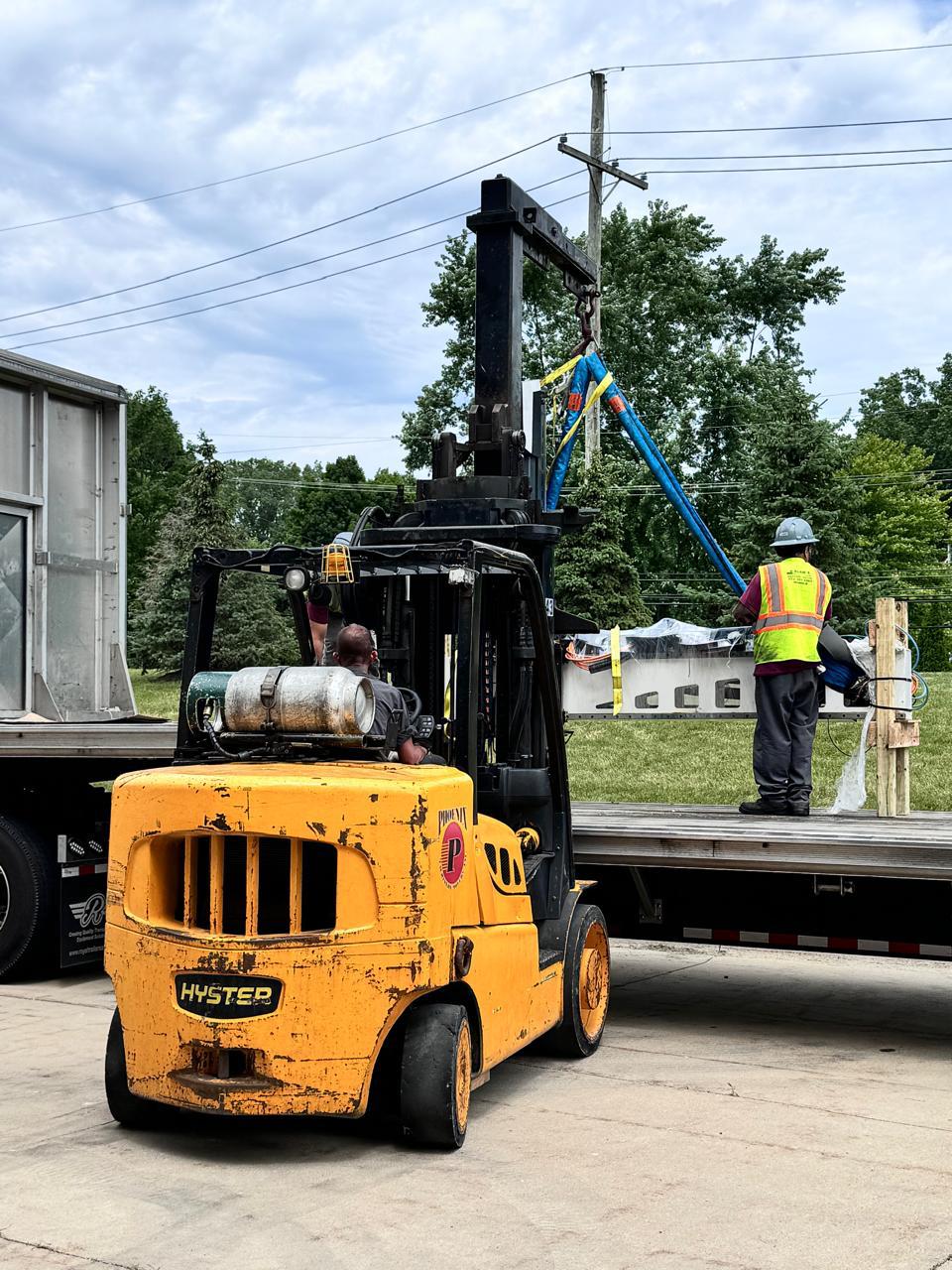 Transporte, carga, descarga y acomodo de maquinaria. Colocación de equipos en altura. Reubicación de plantaas completas.